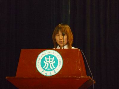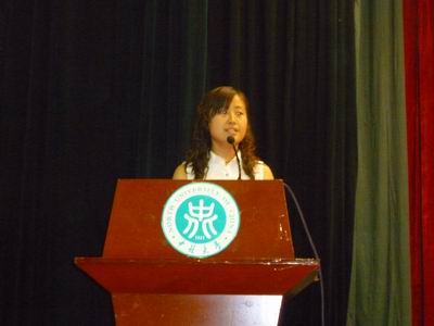 在校生代表李慧同学代表在校同学对学长们的顺利毕业表示热烈的祝贺,同时向他们表示达了在校同学的决心与计划。承诺要珍惜大学生活,感恩父母、老师 ,努力学习,服务社会,为祖国的建设事业奉献青春。