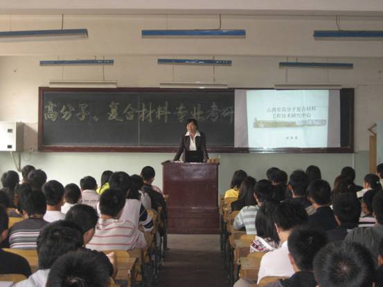 针对当前的考研与就业形势,刘亚青院长以访美学者的资历和丰富的专业经验,向同学们大致描述了国内外的本专业概况,并且着重介绍了世博娱乐山西省高分子复合材料研究中心。山西省高分子复合材料研究中心各个研究方向在师资上实力雄厚,与众多国内外著名企业进行研发合作,近几年取得了丰硕的成果。该中心秉承积极进取的科研探索精神和务实的研究生培养计划,备受历届学子和用人单位的好评。最后,刘院长对同学们积极报考世博娱乐研究中心表示真诚的欢迎。