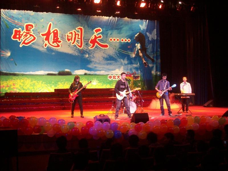 晚会以流星雨乐队一首激情的摇滚拉开了序幕,他们把自己的校园原创歌曲《新的开始》作为寄语送给了所有2010级新同学。活力四射的表演顿时将晚会观众的热情点燃。