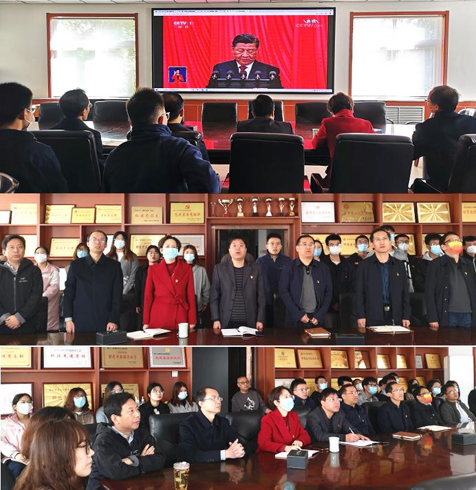 党委理论学习中心组及师生党员代表在学院第一会议室集中收听收看了党的二十大开幕会现场直播。各党支部、各科研中心等广大师生以不同形式进行了收听收看。