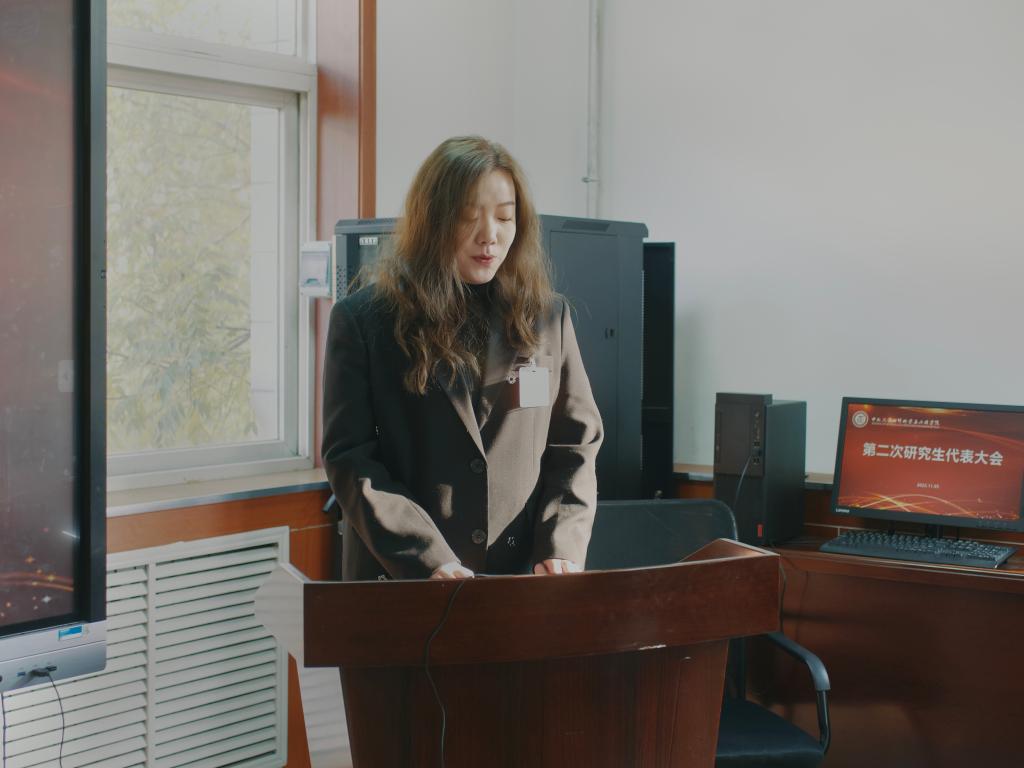 上届研究生会主席景心怡代表第一届研究生会做工作报告。本次报告全面总结了第一届研究生会工作取得的主要成绩,科学分析了学生工作的基本经验,明确提出了研究生会工作的职责和使命,并对新一届院研究生会工作寄予厚望。