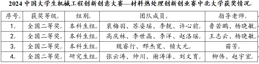 金属材料工程专业组织并获得了学校、学院领导高度重视和鼎力支持。大赛自2024年2月启动以来,为充分提高参赛作品质量,师生积极备战,对作品反复打磨,精心雕琢。经过初赛评审、区域赛决赛激烈角逐,世博娱乐裴梅羽、高庆林、魏睿行和张云涛四支队伍分别以作品《大型轧钢机轴承的热处理工艺设计》、《高速钢齿轮滚刀表面强化的热处理工艺设计》、《大型渗碳齿轮的选材与热处理工艺》和《耐腐蚀滚动轴承热处理工艺》荣获大赛二等奖。