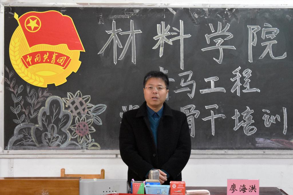 随后,院党委书记廖海洪对青马工程开班表示祝贺,并从学院的实际情况出发,对学员们提出希望。他强调学生干部要围绕学院工作重点,结合自己的工作实际,带动全院学生培养良好的学习风气,推动学院各项工作顺利开展。