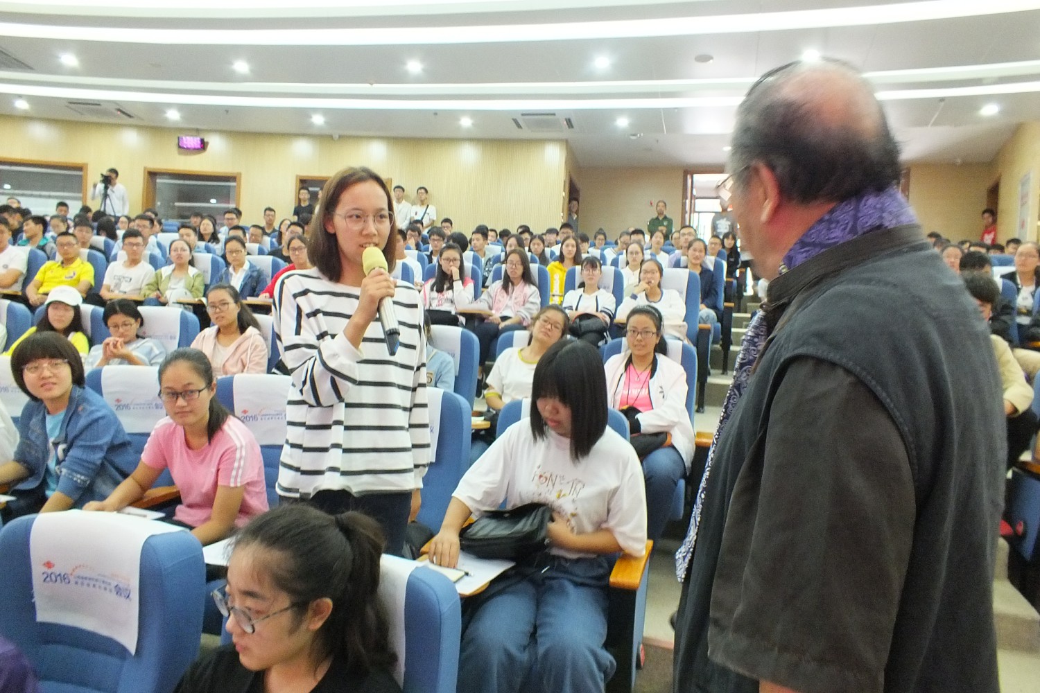 彭老演讲结束,校党委李忠人书记做了总结讲话。李书记高度评价了彭老用大爱和真情演绎、用生命演讲的精神,对新生们提出了殷切期望,希望中北莘莘学子能以彭老为榜样,谨记彭老的忠告和建议,要勤于读书思考,勇于探索,创造出美好未来。