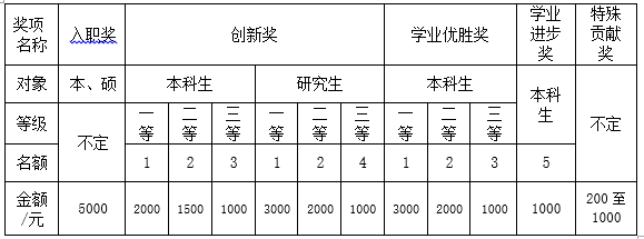 三、评选额分配:具体名额与奖学金分配见下表: