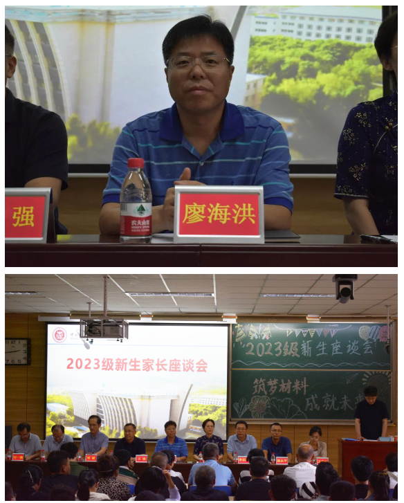 于2023年9月14日下午在09202H召开2023级新生家长座谈会。院党委书记廖海洪、院长王强、院党委副书记郭云霞、科研副院长刘斌、材料成型及控制工程专业负责人李志勇、无机非金属材料专业负责人渠永平、高分子材料与工程专业负责人付一政、复合材料与工程专业负责人张彦飞、院教学科科长金属材料专业教师王志云出席会议,2023级各班班主任及300余名新生家长参加会议。座谈会由院团委书记郝诗韵主持。