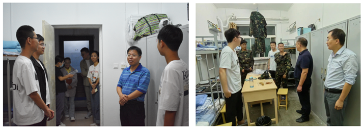 在走访文韬二本科生宿舍途中,廖海洪书记聊起新生们对学校的印象,询问新生们生活上存在的问题,并教导新生们入学后不能放松,要提高自我要求,在大学四年后学有所成,学有所长。廖书记还给同学们讲述了自己当年军训时的场景,他感慨现今条件变好,强调同学们要珍惜现有条件,不负韶华。