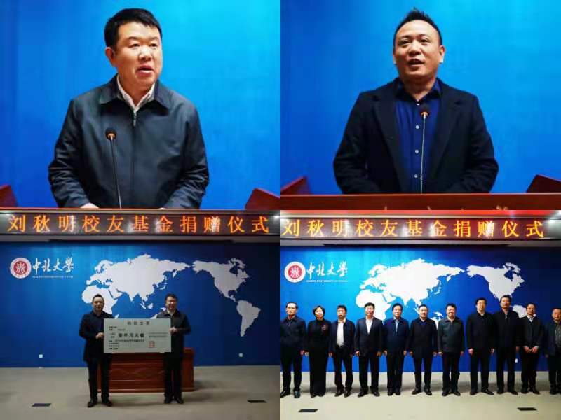 刘秋明校友讲话结束后,校党委书记沈兴全代表学校接受了捐赠,刘俊副校长代表我校与刘秋明校友签署了捐赠协议。沈兴全书记说:“金钱总有额度,物质可以计价,但唯有精神价值无法估量。”对以刘秋明为代表的杰出校友的感谢,不仅仅是因为金钱和物质的捐赠,更是因为他们对母校满怀感恩,怀着对母校的热忱之心和拳拳之意,关心支持母校发展,帮助学弟学妹成长成才,成为学弟学妹们奋斗成才的榜样,也成为学校立德树人的生动教材。仪式最后,沈书记以“三个努力”与到场人员共勉:一是努力谋发展,让中北更强大;二是努力搭平台,助力校友事业发展;三是努力打造“三全育人”崭新局面,培育更多的优秀人才!