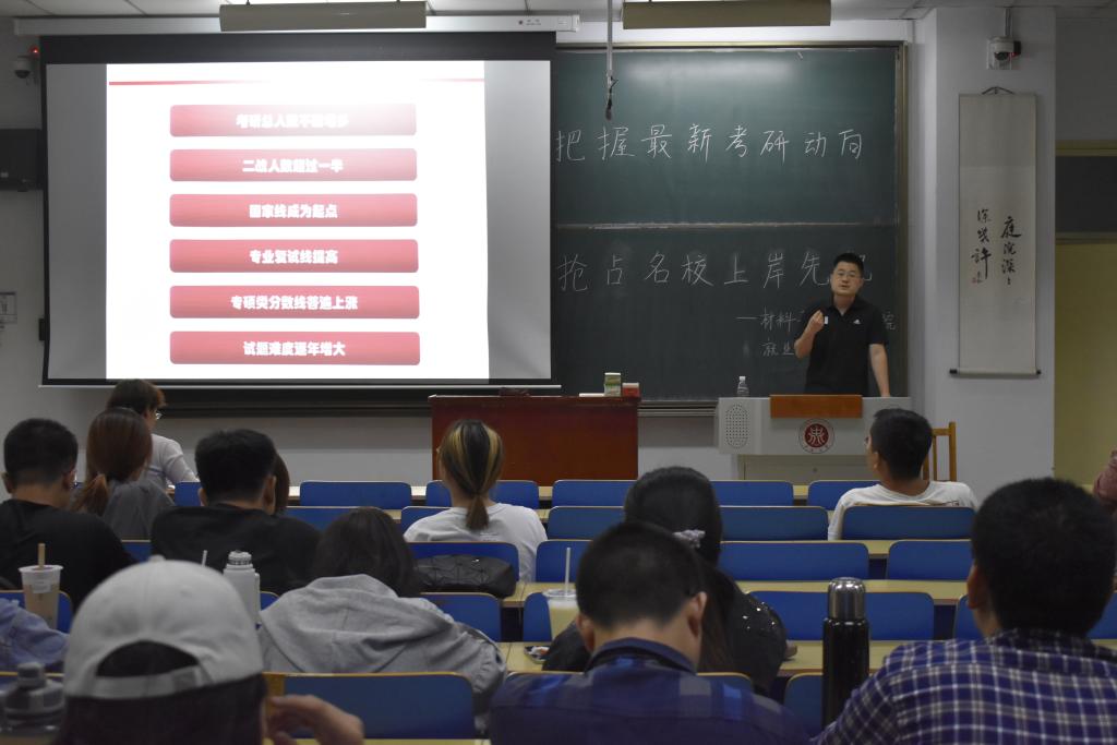 本次会议伊始,王生毅老师根据今年考研的最新动态,分析了今年考研的形势。受到各种因素的影响,今年考研的学生对比往年还会有大幅增长,考研压力也会随之变大,形势十分严峻。之后,王老师在关于研招网中的个人信息填报系统,国家政策以及复试调剂三个方面为同学们提供了宝贵的经验,帮助考生更进一步的了解考研最新信息与政策。