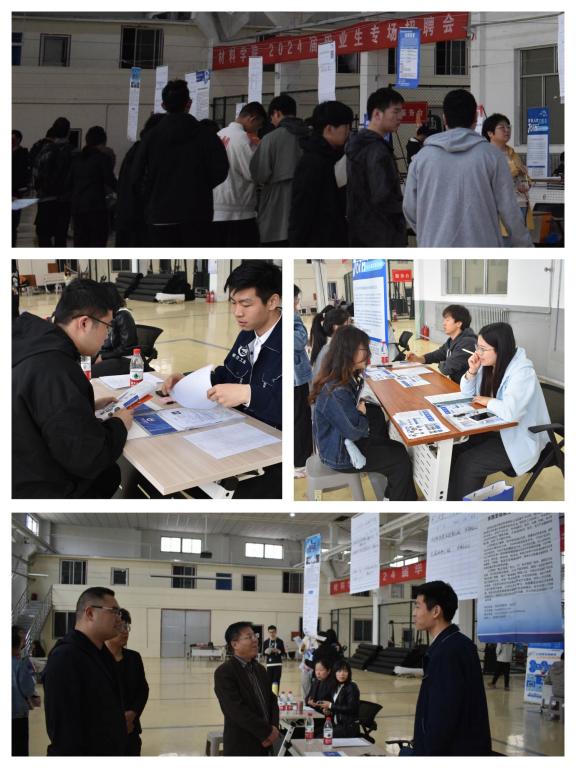 2024届毕业生春季专场招聘会。招聘会邀请来自江苏、河南、陕西、山西等地20余家用人单位,受到学校和学院的重视。学校招生与就业工作部副部长刘宝华、学院党委书记廖海洪、学院副院长王超到场指导,了解学生就业情况并与招聘人员进行交流。招聘会现场,招聘公司向毕业生们介绍企业的基本概况、岗位发展前景、薪资待遇等,并对同学们提出的疑问悉心解答。毕业生们手持精心制作的简历,积极与招聘单位沟通交流。