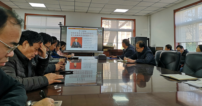 全体教职工在学院进行十九届六中全会精神集中学习。院党委书记薛亚奎同志就十九届六中全会精神为学院全体教职工进行宣讲解读。学习以现场和视频直播相结合形式进行。约150名教职工参加了学习。