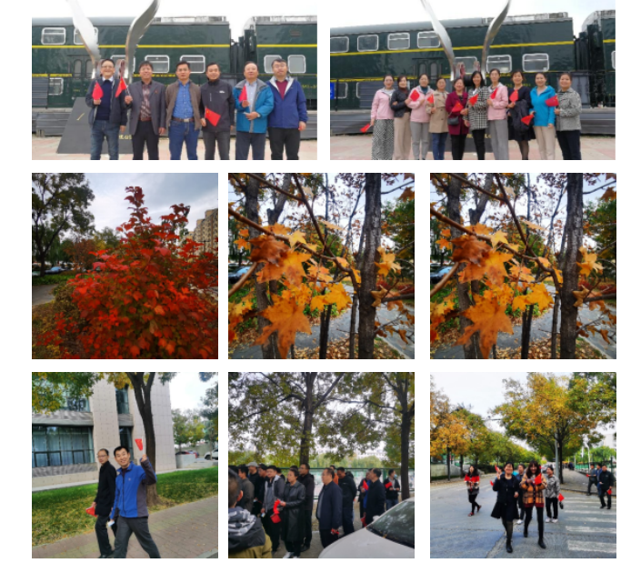 教职工一起寻访秋天的踪迹,尽享大自然的美好馈赠。本次徒步从笃学楼出发,途径科学楼、附属学校、铁路公园和行知广场。老师们在漫天秋色里,走出办公室,呼吸新鲜空气,沐浴温暖阳光、欣赏绚丽景色,体会收获喜悦。满眼是红、橙、黄、绿的色彩,老师们纷纷拿起手机,记录下这美妙的时刻,感受诗意浓浓的晚秋。