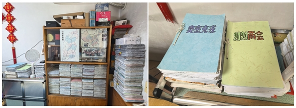 (乔沛堃老书记四十年如一日每天坚持看报学习,家中堆满了自己动手做的摘编手册及学习心得)